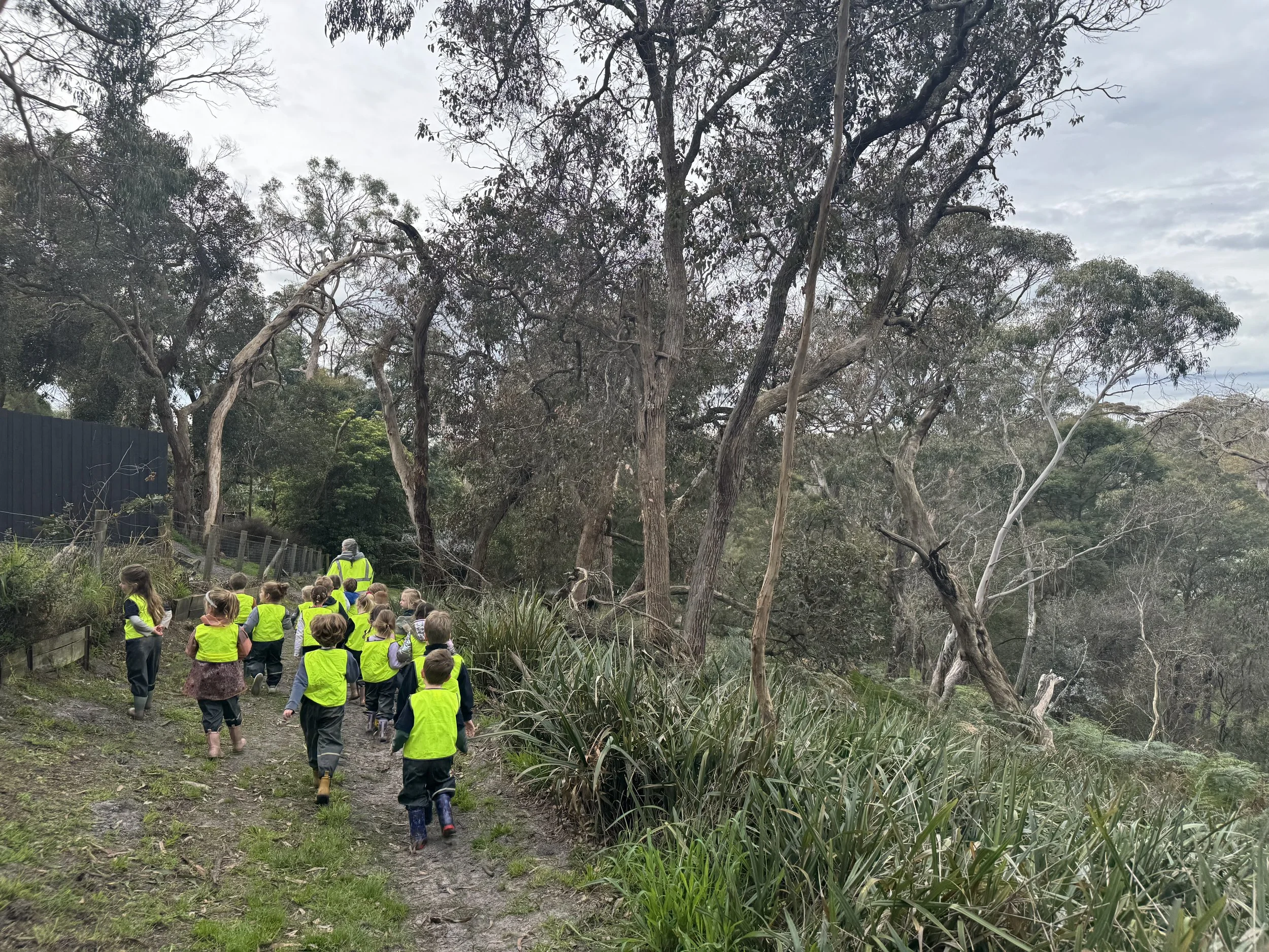 At Balcombe Pre-School, we promote children’s interactions with the natural world and encourage them to respect and take an active role in caring for the environment around them. In Terms Two and Three, one afternoon a week, we enjoy exploring our local environment through our weekly Bush Kinder Outings. These outings take place in the Reserve opposite Balcombe Pre-School (adjacent to Hopetoun Creek), extending to Hopetoun Norfolk Flora and Fauna Reserve. We may also walk up to Mace Oval to participate in some sporting activities to mix things up! Each child is provided with a pair of waterproof overalls to wear, but families must ensure their child brings;- a pair of sturdy gumboots, spare clothes (including socks and a pair of shoes to change into upon our return to Pre-School) and a waterproof bag for wet/dirty clothes.